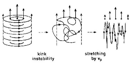 overtwisted rubber band. b: when the azimuthal field dominates, the instability